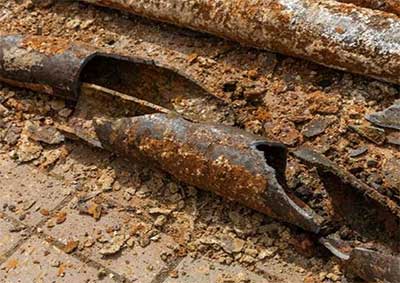 What causes the cast iron to corrode is a combination of several aspects including decades of waste water running through it, grease and detergents are very corrosive, sewage creates sulfuric acid which is constantly trapped in the system and is very corrosive, and due to age and setting product can get caught up in the line creating slow moving drains which means water is constantly sitting in the line and once again being corrosive.